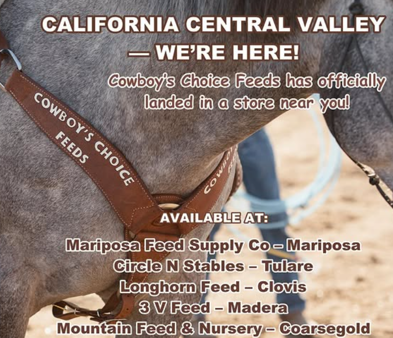 At Maverick Livestock Supply, we’re proud to be a trusted California distributor of Cowboy Choice Feeds — a premium, all-natural horse feed line made by real cowboys who use it every day.